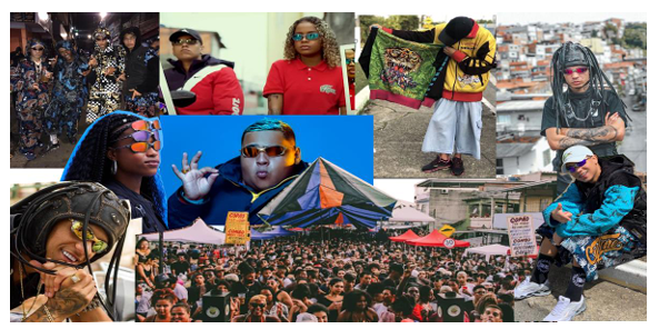 • Clipes e estética musical: videoclipes usam elementos do estilo (motos, carros, roupas de marca, quebradas) como parte da linguagem, reforçando a identidade visual da música.